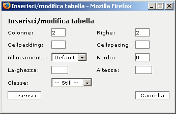 | Cellpadding | Spazio tra il bordo di una cella e il suo contenuto. |